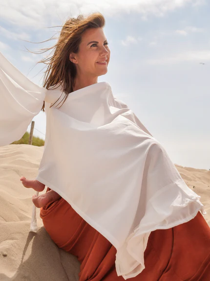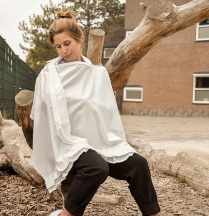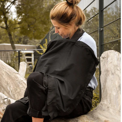 Tragen Sie das Stilltuch mühelos über Ihrem Hals und passen Sie es Ihren Wünschen an.